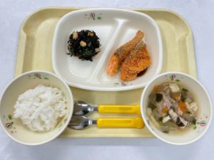 3/10(火)【ごはん・鮭フライ・ひじきのサラダ・豚汁】