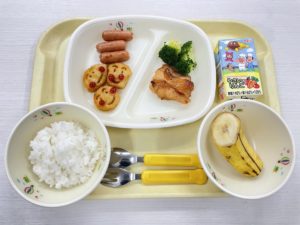 3/6(金)【ごはん・鶏の照り焼き・ウインナー・ポテト・ボイルブロッコリー・バナナ・野菜ジュース】
