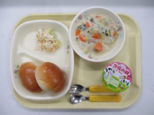 食べる勢いが 皆さんこんにちは!まだまだ肌寒い日は続きますが、今日は幾分と過ごしやすい・・・?気のせいですかね?(;^ω^)(笑) 今日のメニューは【ロールパン・冬野菜の和シチュー・ささみとキャベツのサラダ和え・ヨーグルト】です♪ 今日もみんな美味しそうに食べてくれました(´▽`) 今日はパン食だったからか、いつもより食べる勢いがすごかった気がします(笑) 来週の給食もお楽しみに~♪ それではまた来週(^^)ノシ よく一緒に読まれている記事 フランスの家庭料理 喜んで♪ 無我夢中で いつもより食べる子が 今日は頑張って フォークに上手く巻き付けて♪ みんな大好きウインナー♪ いつも残すが