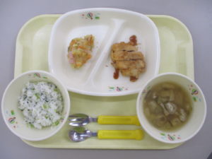 菜飯を頑張って 皆さんこんにちは!週初めが雨だと、なんだか気が滅入りますね(>_<) 今日のメニューは【菜飯・鶏カツ・じゃが芋きんぴら・みそ汁】です♪ 今日もみんな美味しそうに食べていました(*^▽^*) 特に鶏カツは、ほとんどの子が完食しており、菜飯もみんな頑張って食べてくれました( *´艸`) 明日のメニューは何かな?お楽しみに~♪ それではまた明日(^^)ノシ よく一緒に読まれている記事 食べれなかった子も みんな美味しそうに 鶏かつ完食♪ いつもより進みが お肉と一緒にお野菜も(^^♪ 完食する子続出 とても美味しそうに 完食する子が多く( *´艸`)