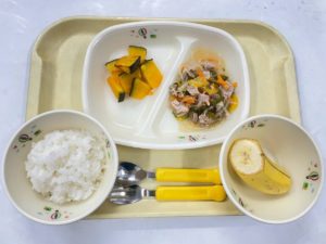 8/27(水)給食 【ごはん・豚肉とピーマンの炒め物・焼きかぼちゃ・バナナ】 よく一緒に読まれている記事 お肉はみんな大好き どのメニューも( *´艸`) かぼちゃを食べると風邪をひかない? ほぼ完食♪ どのメニューも 来週からの給食も 絡めてあるタレも気にする事なく お野菜も嫌がることなく