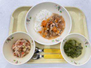 本日の給食 10/3(金)【ハヤシライス・トマトと春雨のサラダ・野菜スープ】 よく一緒に読まれている記事 本日の給食 英語が起源? ハヤシライスの語源 ちゅるちゅると頑張って 懸命に巻き巻き、そしてちゅるちゅる♪ うどんはちゅるちゅる、ひじきも嫌がらず ハヤシライス大人気♪ お皿がピッカピカに