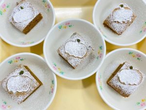 今週の手作りおやつ 今週は月曜日から『ハロウィンケーキ』を提供しています☆ かぼちゃはもちろんですが、おから、スキムミルクなどを入れて焼き上げました。 仕上げに粉糖でかぼちゃの型を使って飾り付け✨ かぼちゃの種も添えてあります(#^.^#) おいしいと言って子どもたちは食べてくれていました♬ よく一緒に読まれている記事 今週の手作りおやつ 今週の手作りおやつ 絡めてあるタレも気にする事なく お野菜も嫌がることなく いつもとは違うけど シンプルが一番? 両手でしっかり押さえて 欠かせない栄養素が詰まって