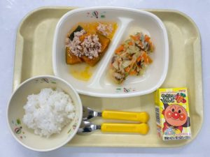 本日の給食 11/6(木)【ごはん・鮭のちゃんちゃん焼き・かぼちゃのそぼろあん・野菜ジュース】 よく一緒に読まれている記事 本日の給食 本日の給食 本日の給食 本日の給食 普段は進みが遅いけど いつもより多い おにぎりに大喜び コロッケ完食♪