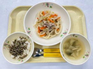 3/11(水)【焼うどん・じゃこと切昆布のふりかけごはん・みそ汁】