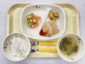 4/1(水)【ごはん・豆腐ハンバーグ・きゅうりとささみのサラダ・みそ汁】
